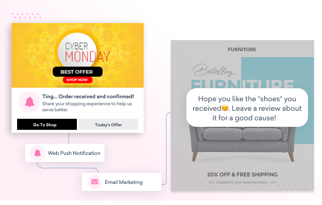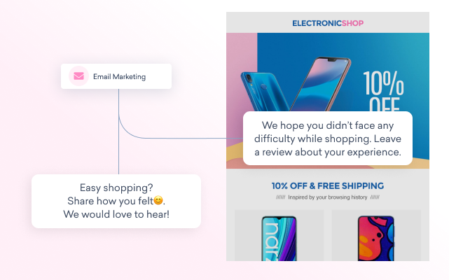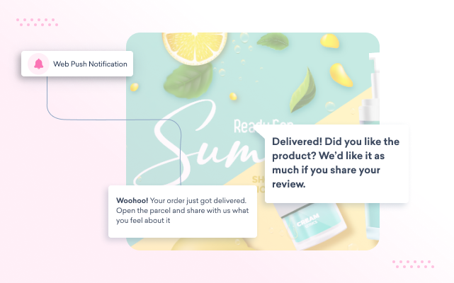 One of the best times to ask for a review from customers is when the product is delivered to them. At this time, they are happy that they have received the new product and are very excited about it. You can set up an email or web push automation to ask for their reviews, product image, etc.