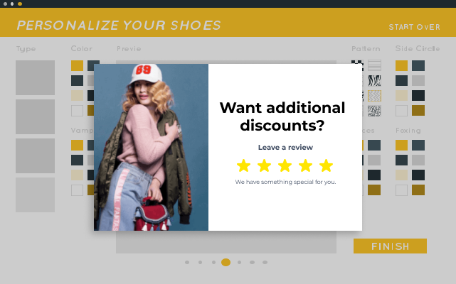 You can use pop-ups to encourage these users to leave a review about their past shopping experiences. If they are not in a hurry, more often than not, they’ll definitely leave a review.
