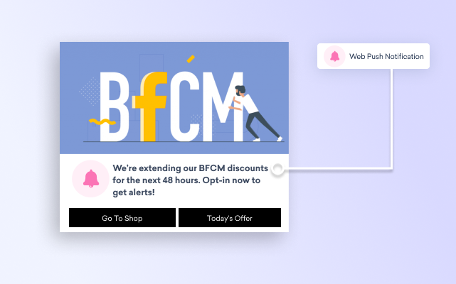 Get more web push opt-ins before, during and after BFCM/ holiday season sale.