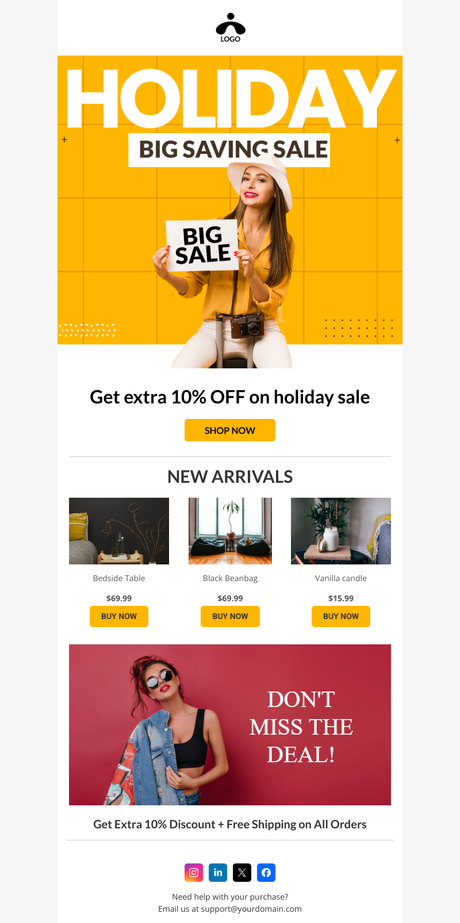 Need inspiration for your next email campaign? We’ve provided a wide selection of free email templates and examples for you to take away and use.